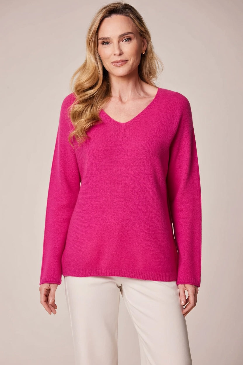 Decollage Fuchsia V-Neck Boyfriend Knit