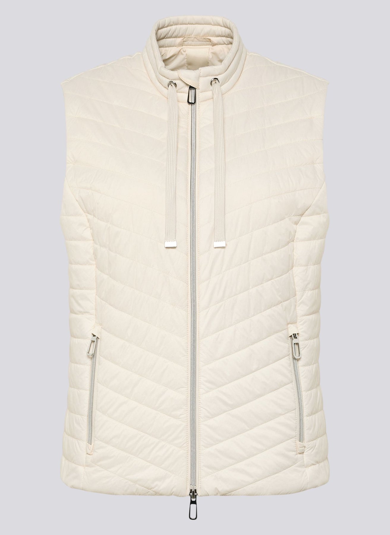 Ce gilet matelassé sans manches séduit par son léger rembourrage, ses coutures obliques et ses poches zippées pratiques. Son col montant à cordon de serrage apporte une touche d'élégance à son design fonctionnel. Effet matelassé et légèrement rembourré.