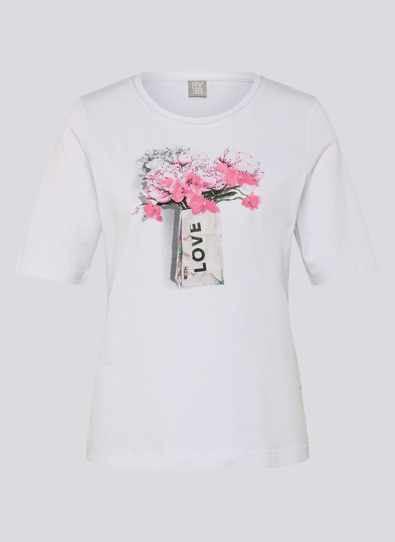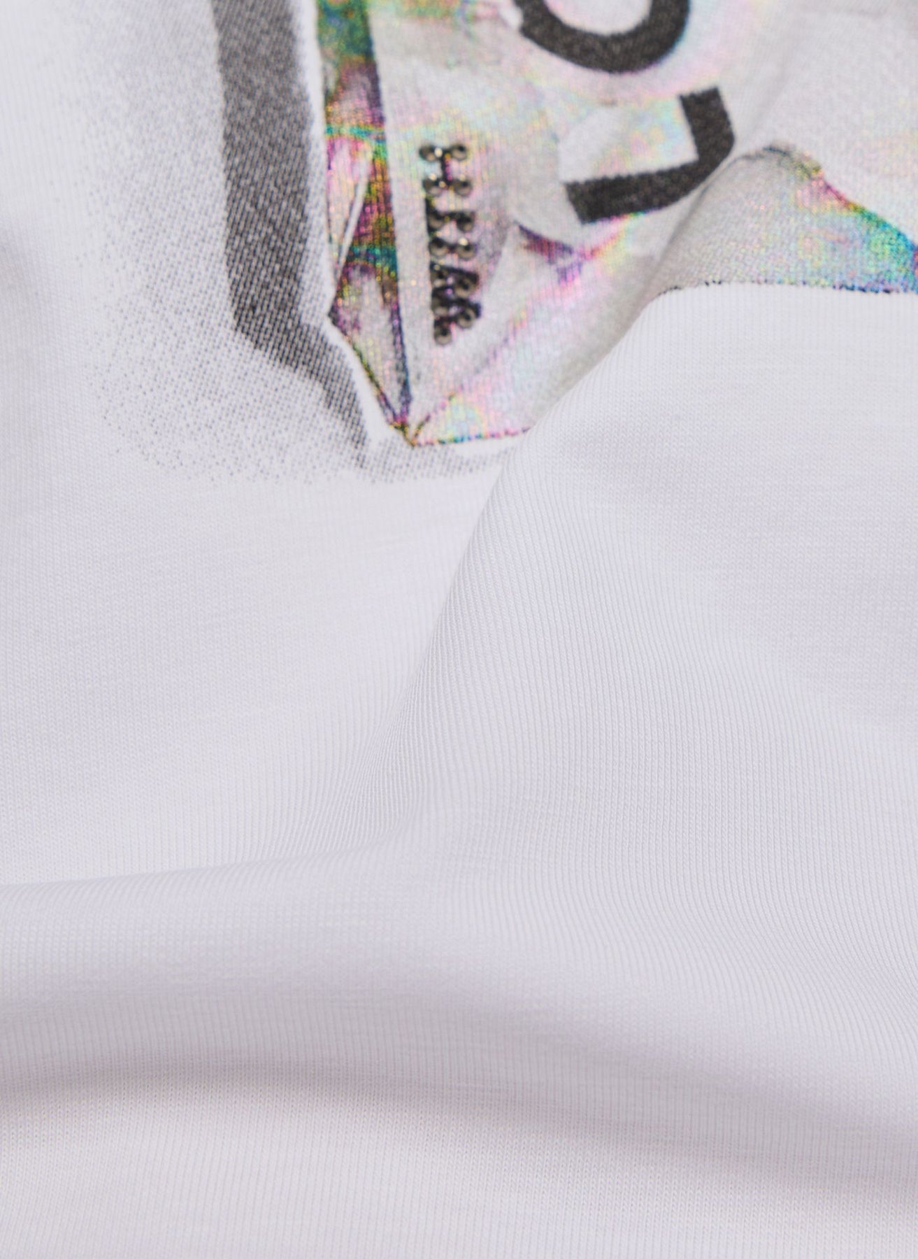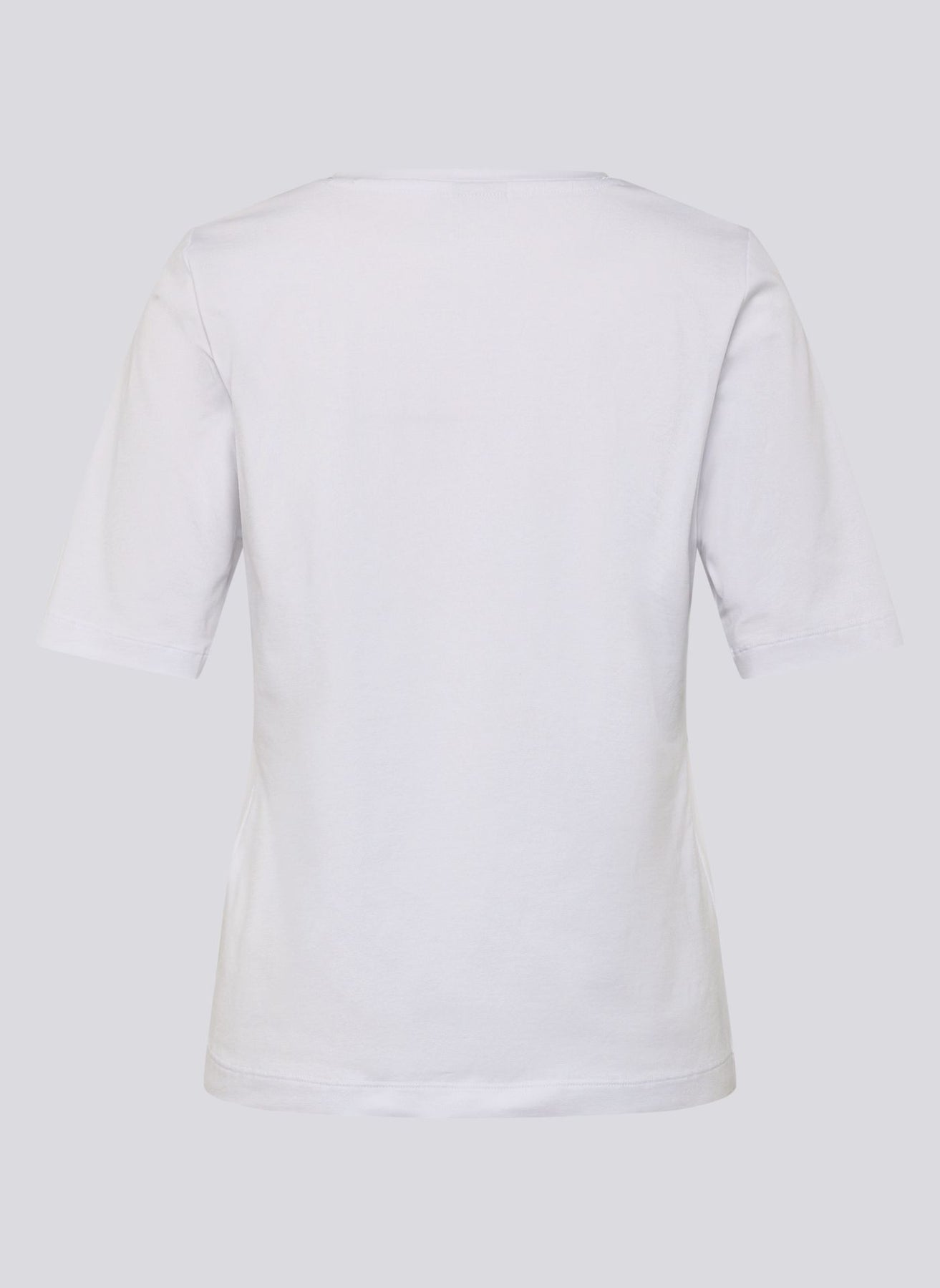 Composé à 95 % de coton et à 5 % d'élasthanne, ce t-shirt offre une douceur et un confort exceptionnels grâce à son tissu extensible. Son encolure ronde classique lui confère une allure intemporelle. Le motif floral sur le devant est rehaussé de délicats strass, apportant ainsi une touche subtile et scintillante.