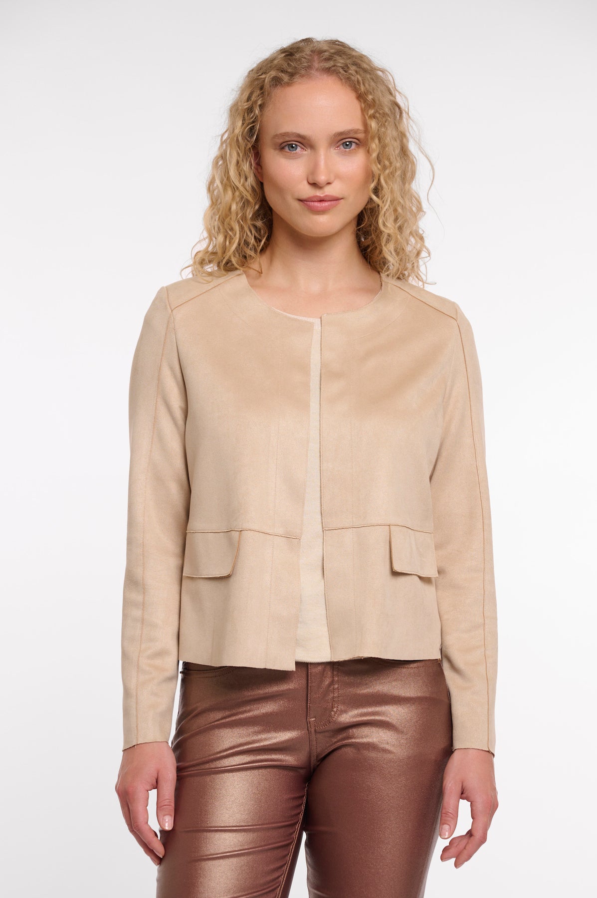 Cette veste slim de Rino & Pelle incarne l'élégance discrète. Confectionnée en suédine souple et douce, elle épouse parfaitement les formes. Son encolure ronde épurée, ses coutures raffinées qui soulignent la silhouette féminine et ses poches avant décoratives lui confèrent une allure à la fois sophistiquée et décontractée.